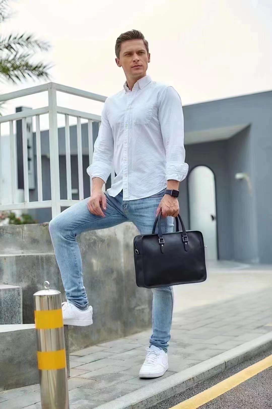 Italian Leather Briefcase Laptop Messenger Bags for Men