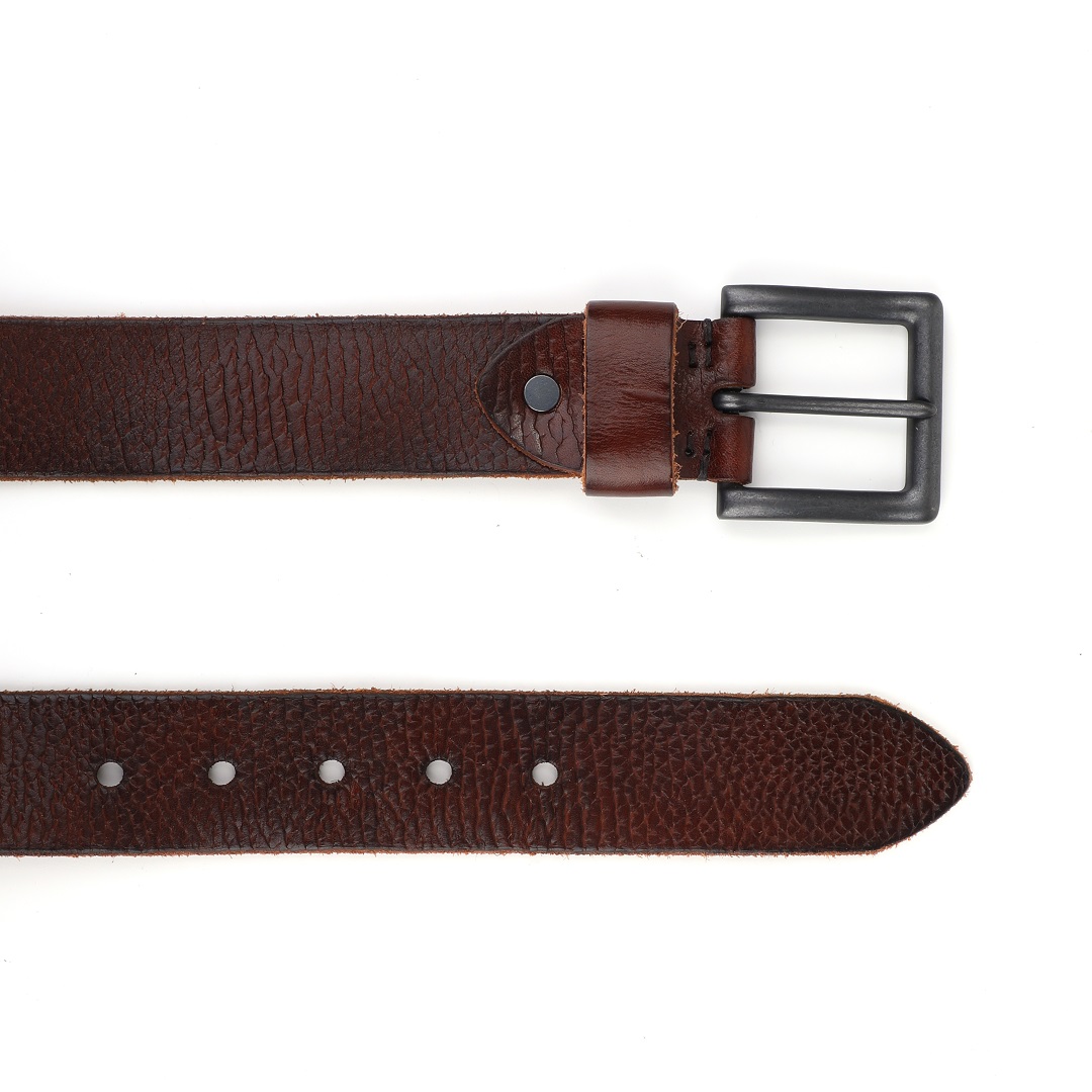 - Hight density zink alloy buckle, antic matt black color matching the belt strap