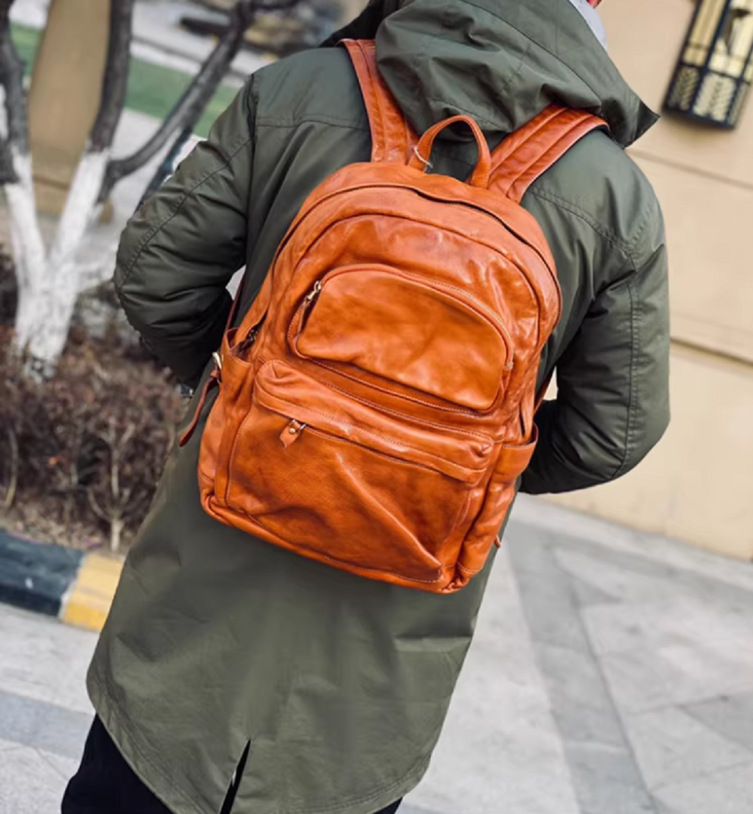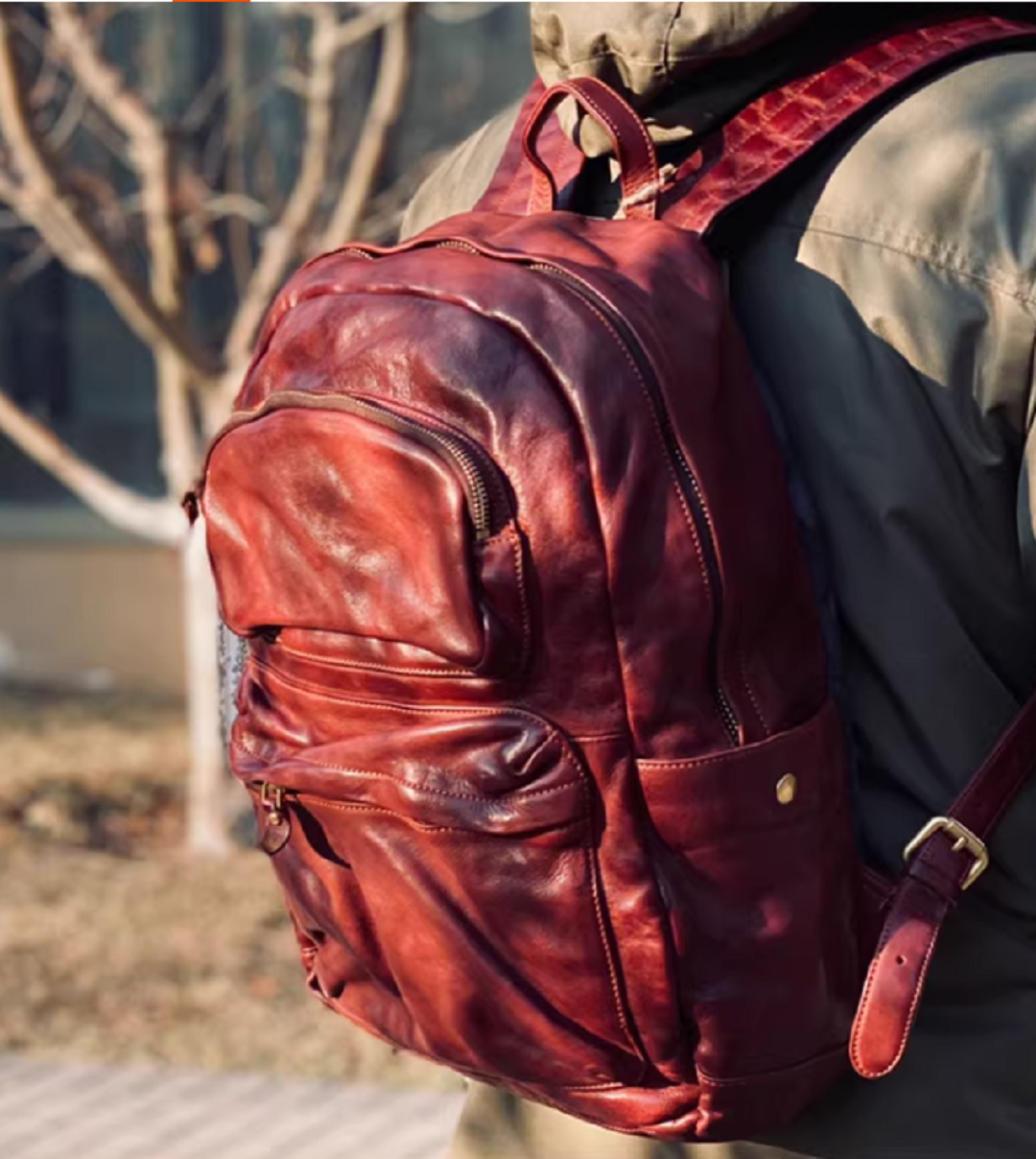 Vegetable Tanned Italian Leather Backpack for Women and Men